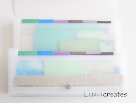 Each expanding file is color coordinated for easy retrieval. I also have a bin to collect paper scraps when I’m working on projects. Then when I have time, I file the scraps into my expanding files.